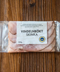 Vindelnrökt skinka är en klassiker som blivit starkt förknippad med genuin smak och tradition. Den tydliga röksmaken i kombination med en balanserad sälta ger en skinka med karaktär och stolthet. Nätskinkan har en jämnare form som gör den särskilt praktisk att skiva i manuella charkdiskar. Sedan 2024 bär Vindelnrökt skinka Sveriges första – och hittills enda – skyddade geografiska beteckning inom kött och chark.