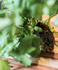 Koriandern levereras med rotplugg för längre hållbarhet.